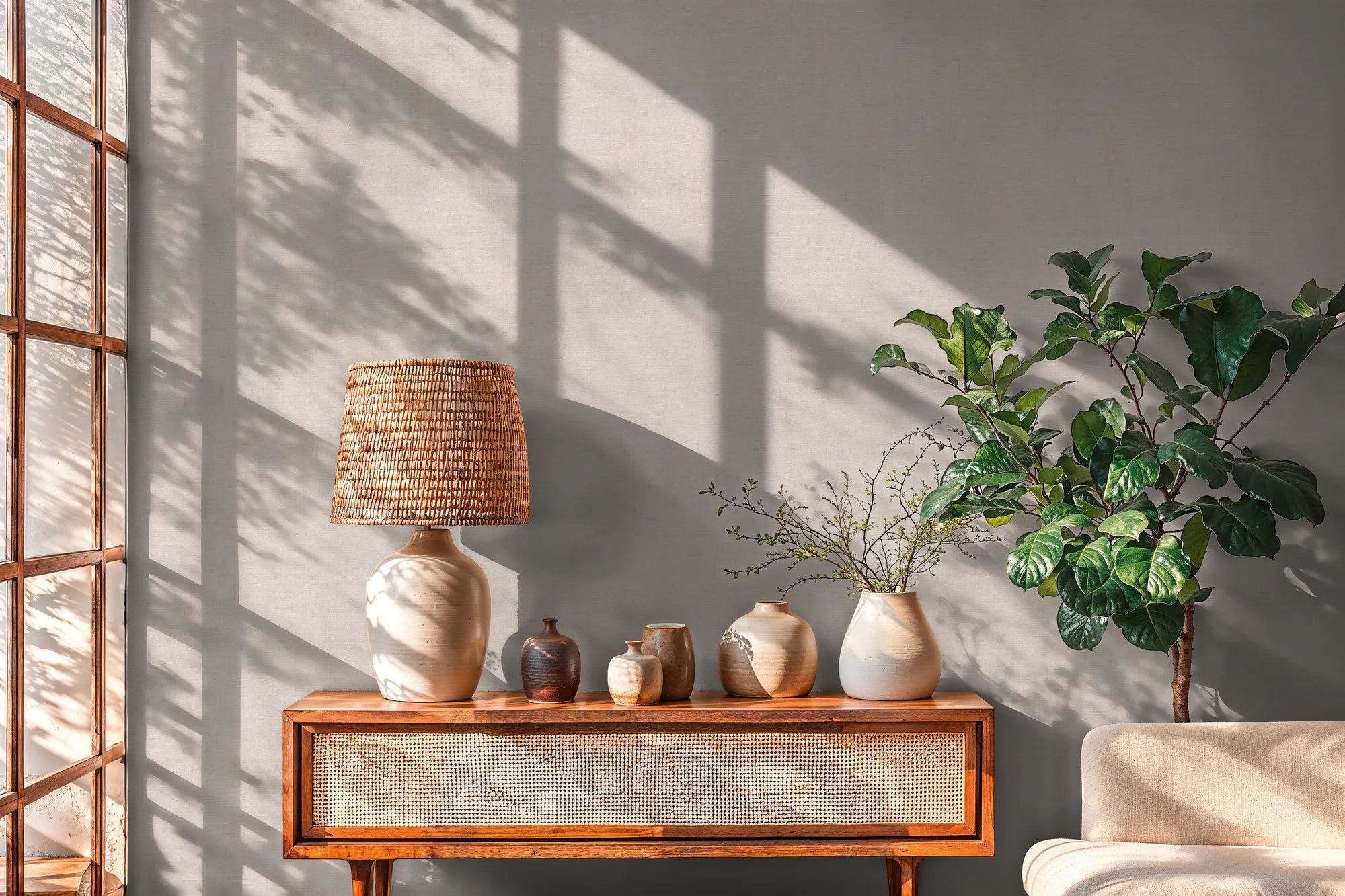 The Linen wallpaper brings timeless minimalism and subtle texture to your walls. Its refined weave pattern mimics natural fibers, with a layered thread-like effect that adds depth and tactile warmth. The result is a clean, sophisticated backdrop that works beautifully in any interior.