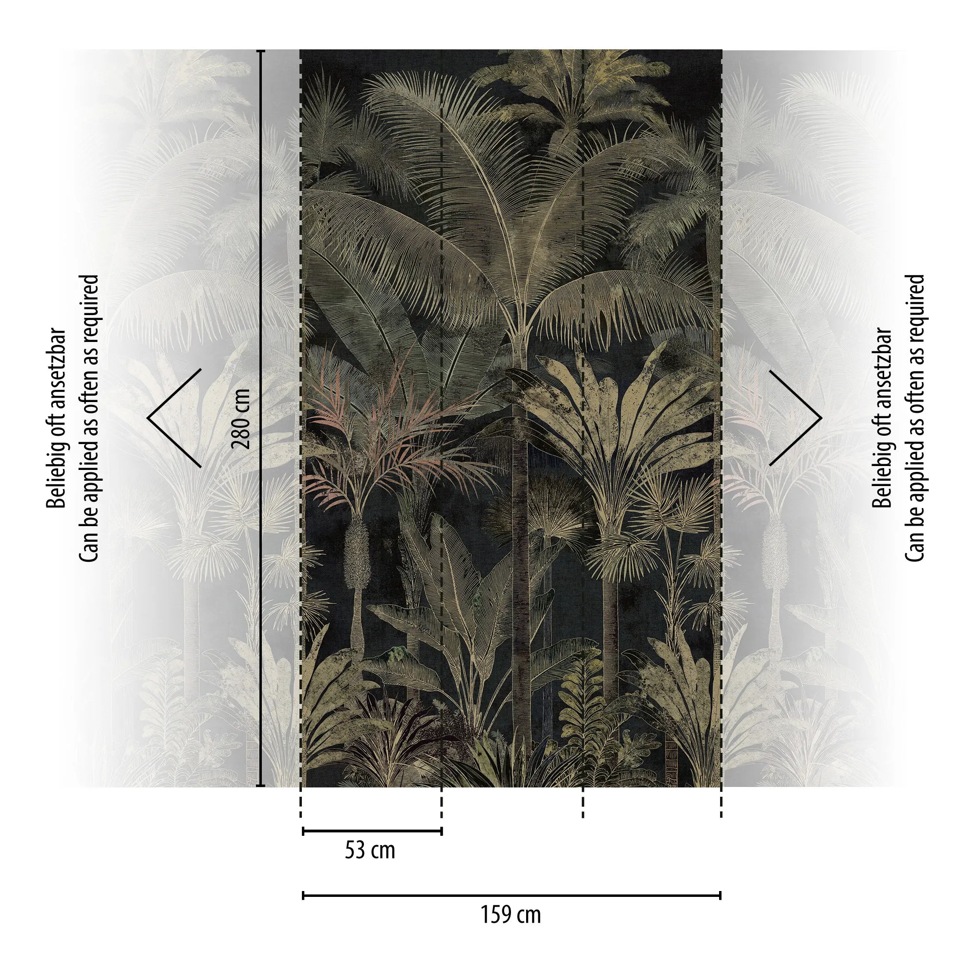 This Smart Wall design consists of 3 panels, each panel is 0.53mW x 2.80mH. One roll will cover a wall measuring 1.59mW x 2.80mH. All rolls are numbered and labelled, and can easily be cut into panels for easy installation.