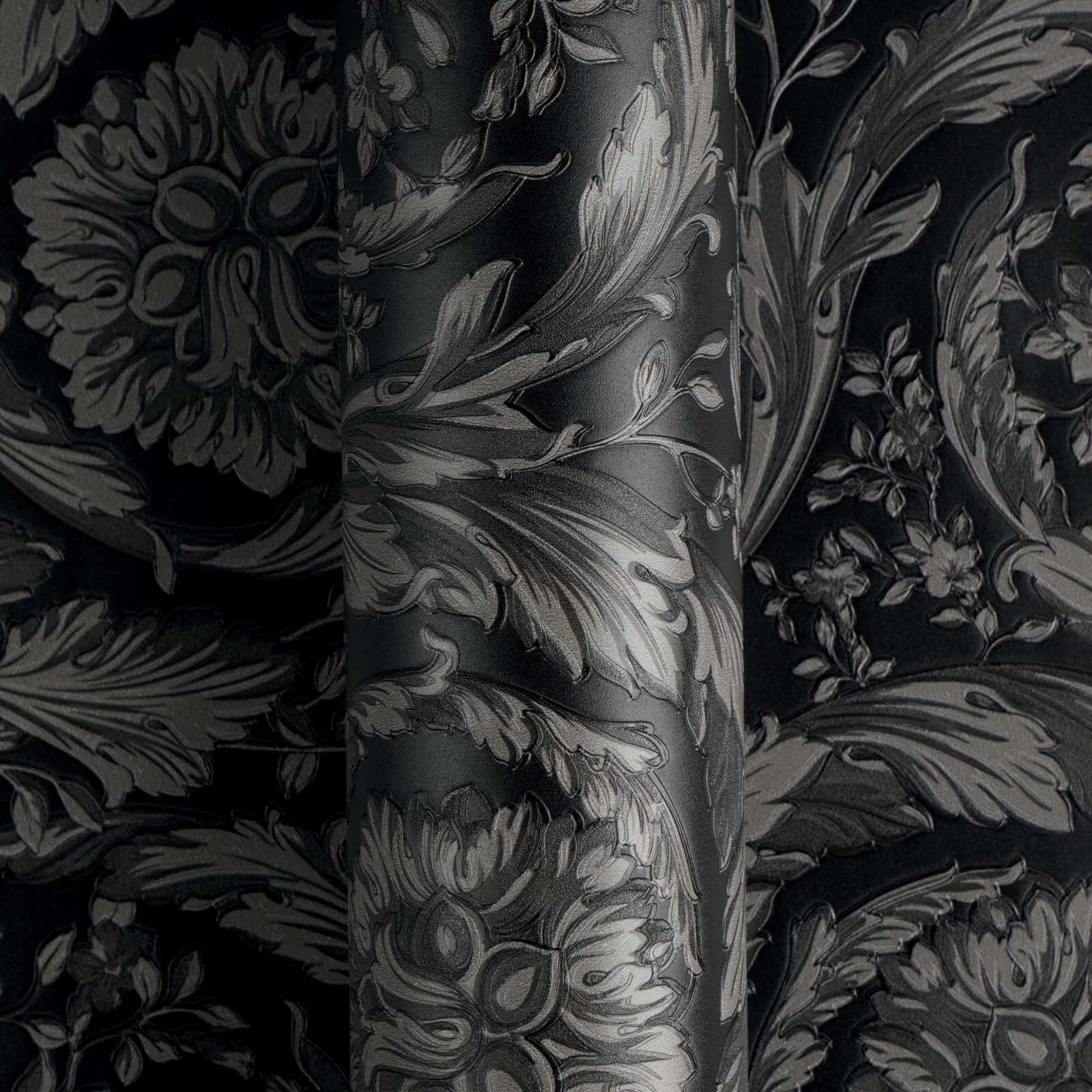 Barocco wallpaper represents the expressive essence of the collection: voluminous ornamentation, sculptural flourishes, dramatic light-dark contrasts. The wallpapers in this series are ambitious stage sets – bold, opulent, uncompromising. Combined with metallic accents, rich colours and elegant contrasts, they create a luxurious effect that transforms rooms into stages.